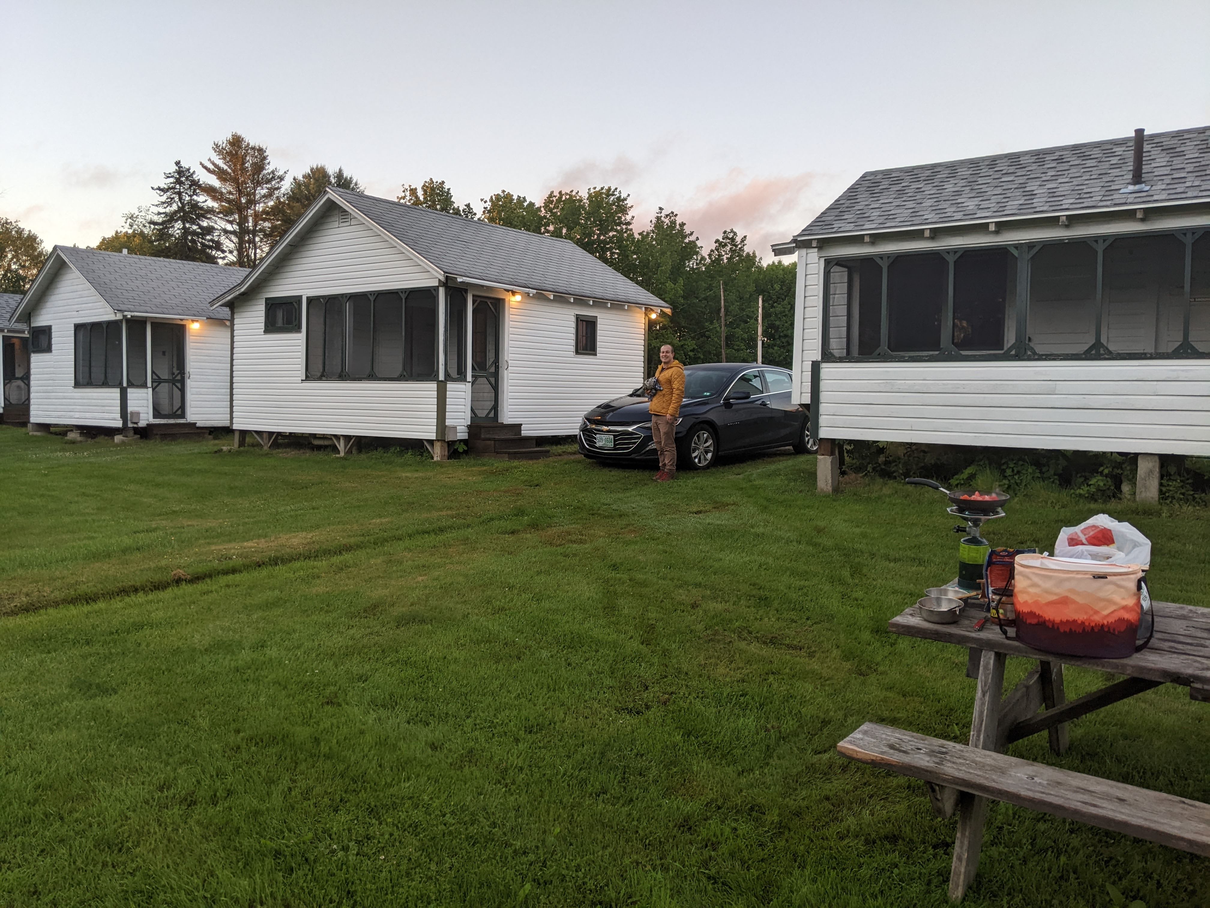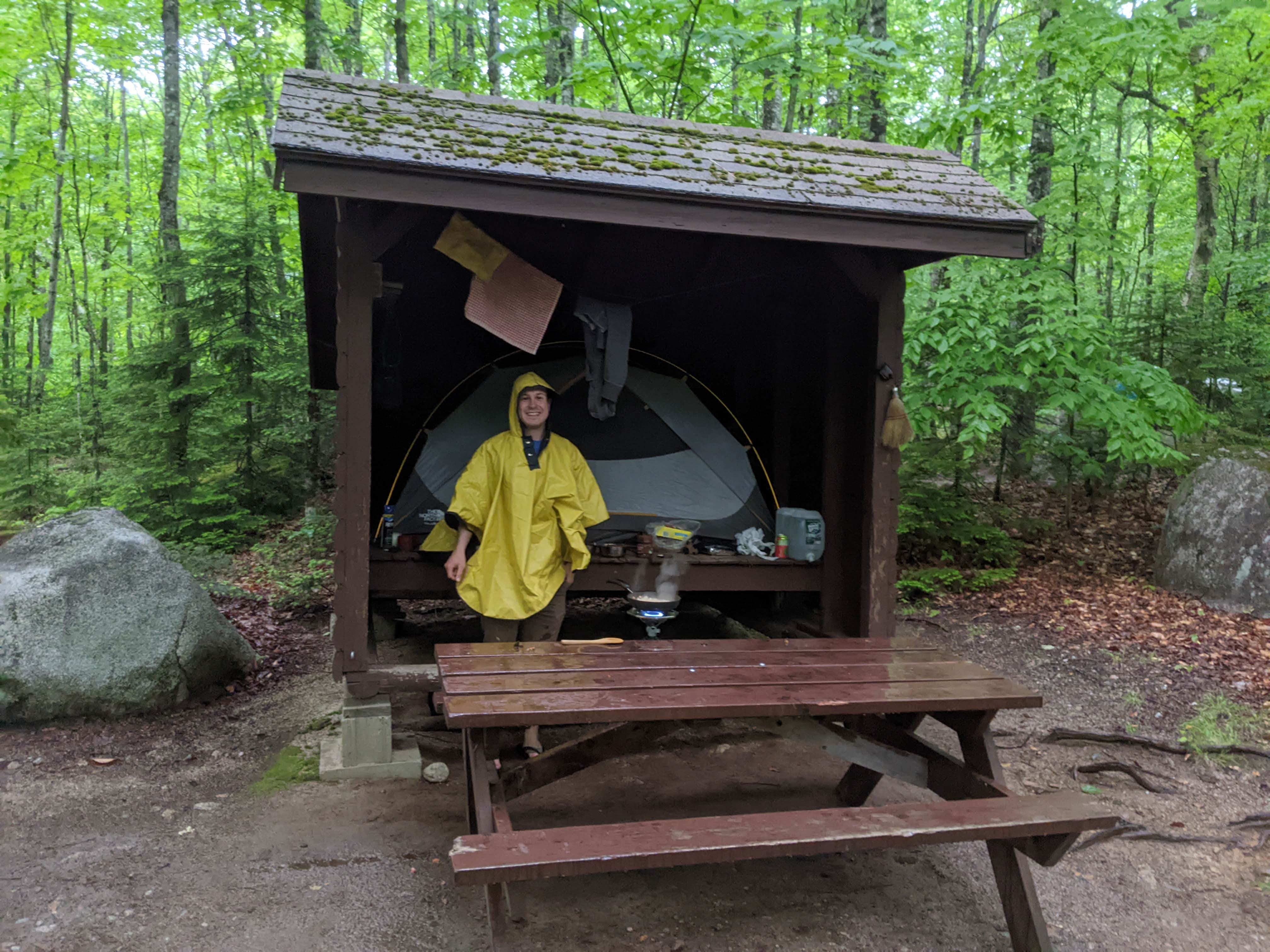 Around 14:00 Kevin and I said our goodbyes and headed north to Baxter State Park. Along the way we bought camping groceries and tried to learn Maine counties. It was raining at Baxter, but the lean-to was dry and we enjoyed a fantastic meal of Nezinscot chorizo tacos.