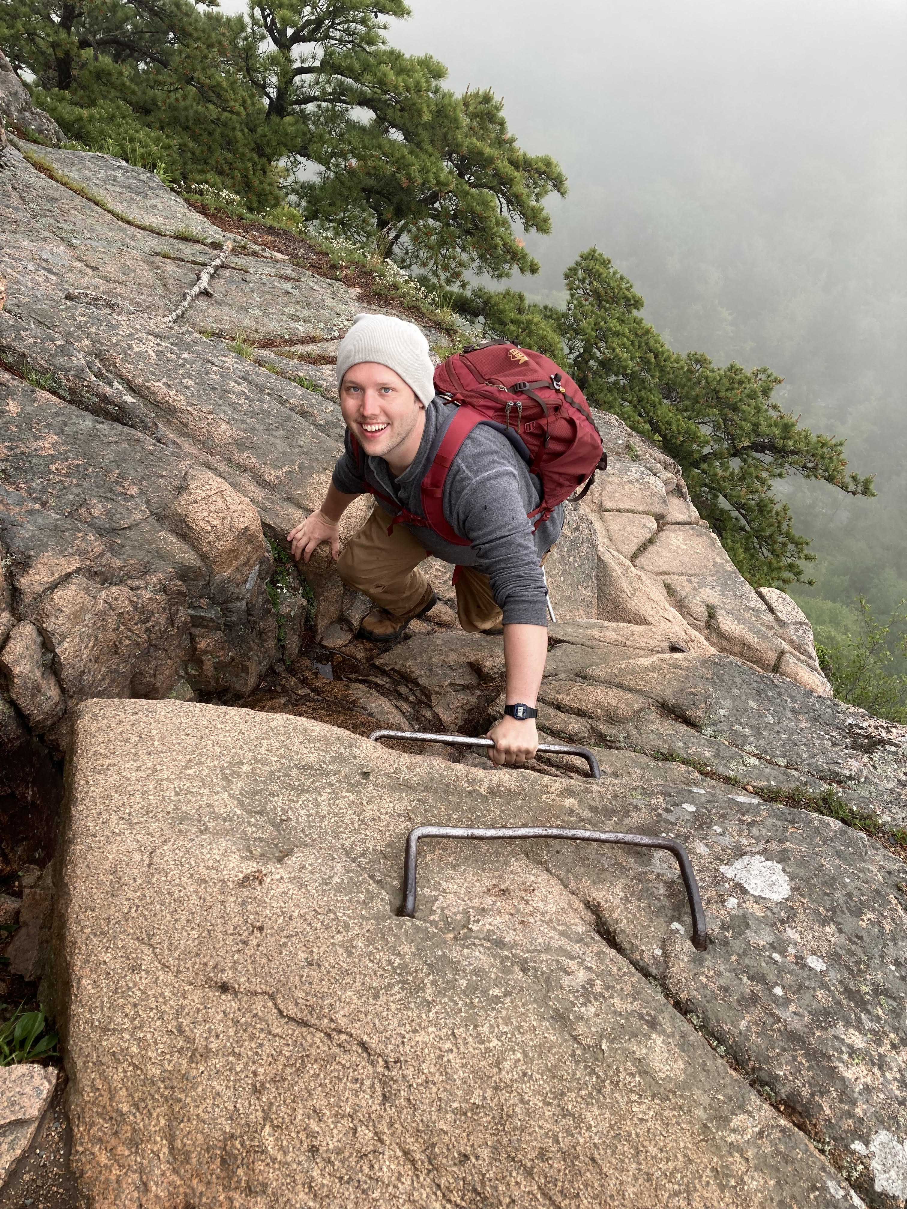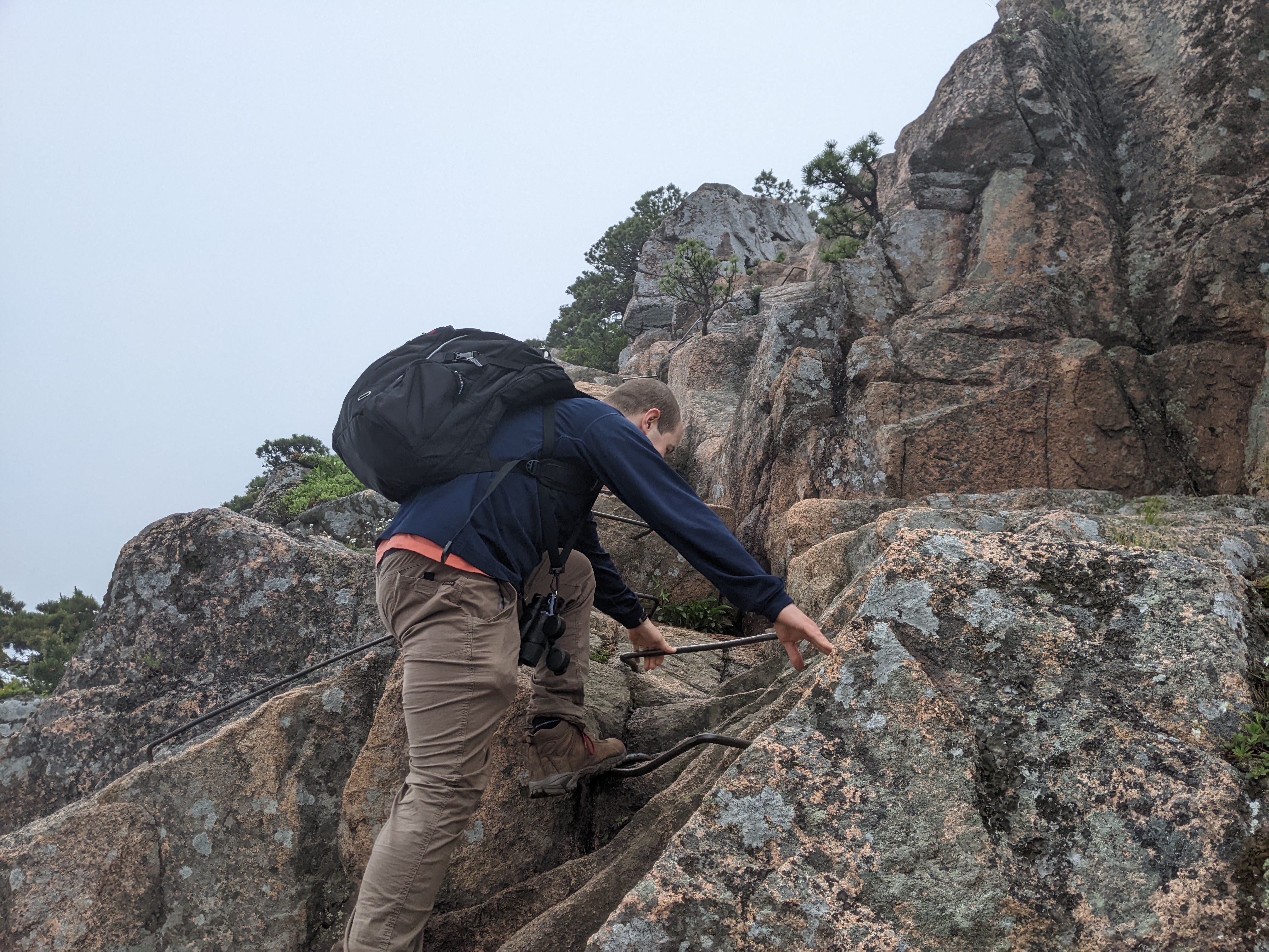 Thursday morning we excitedly drove to Bar Harbor only to have the cruise canceled again. Instead, we hiked the famous beehive trail. Despite the fog it was a wonderful day to hike Acadia.
