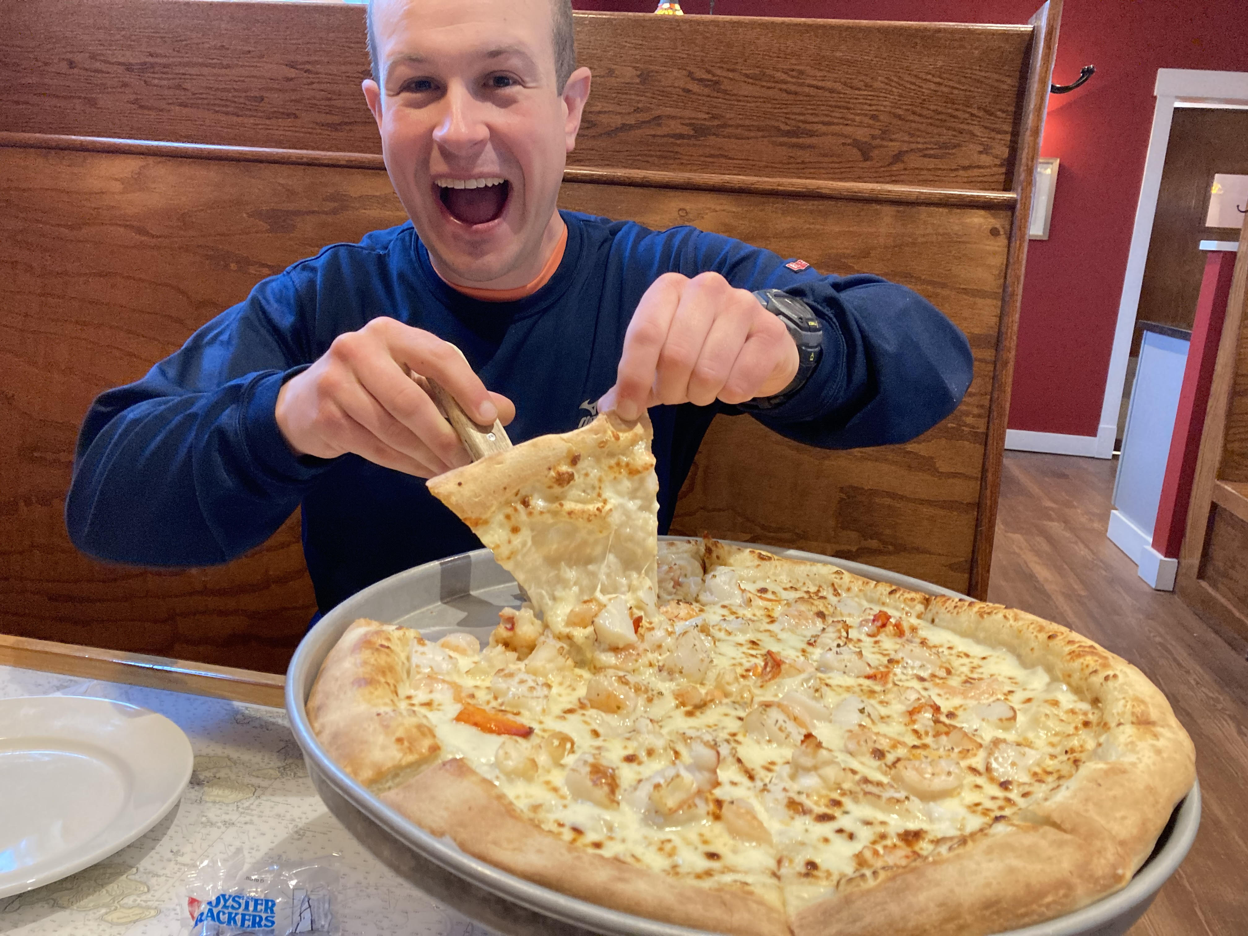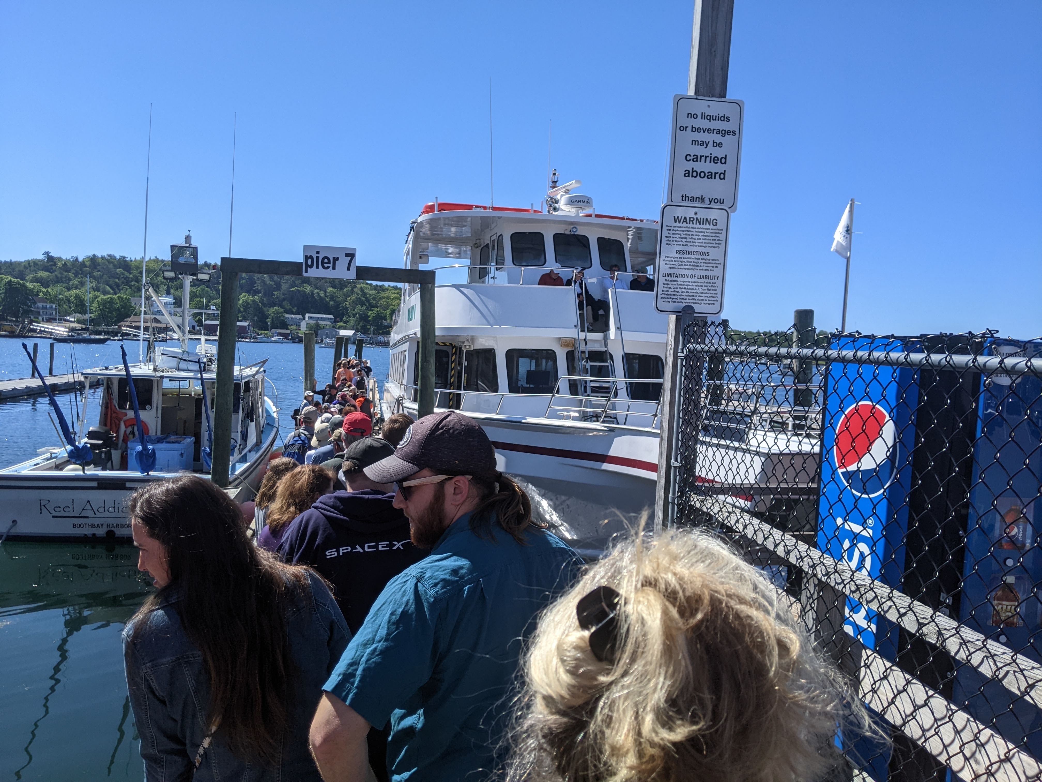 The rain got really bad. We stopped for seafood pizza and regrouped, deciding to cancel our final night in Bass Harbor and try our luck with a seabird cruise in Boothbay Harbor.