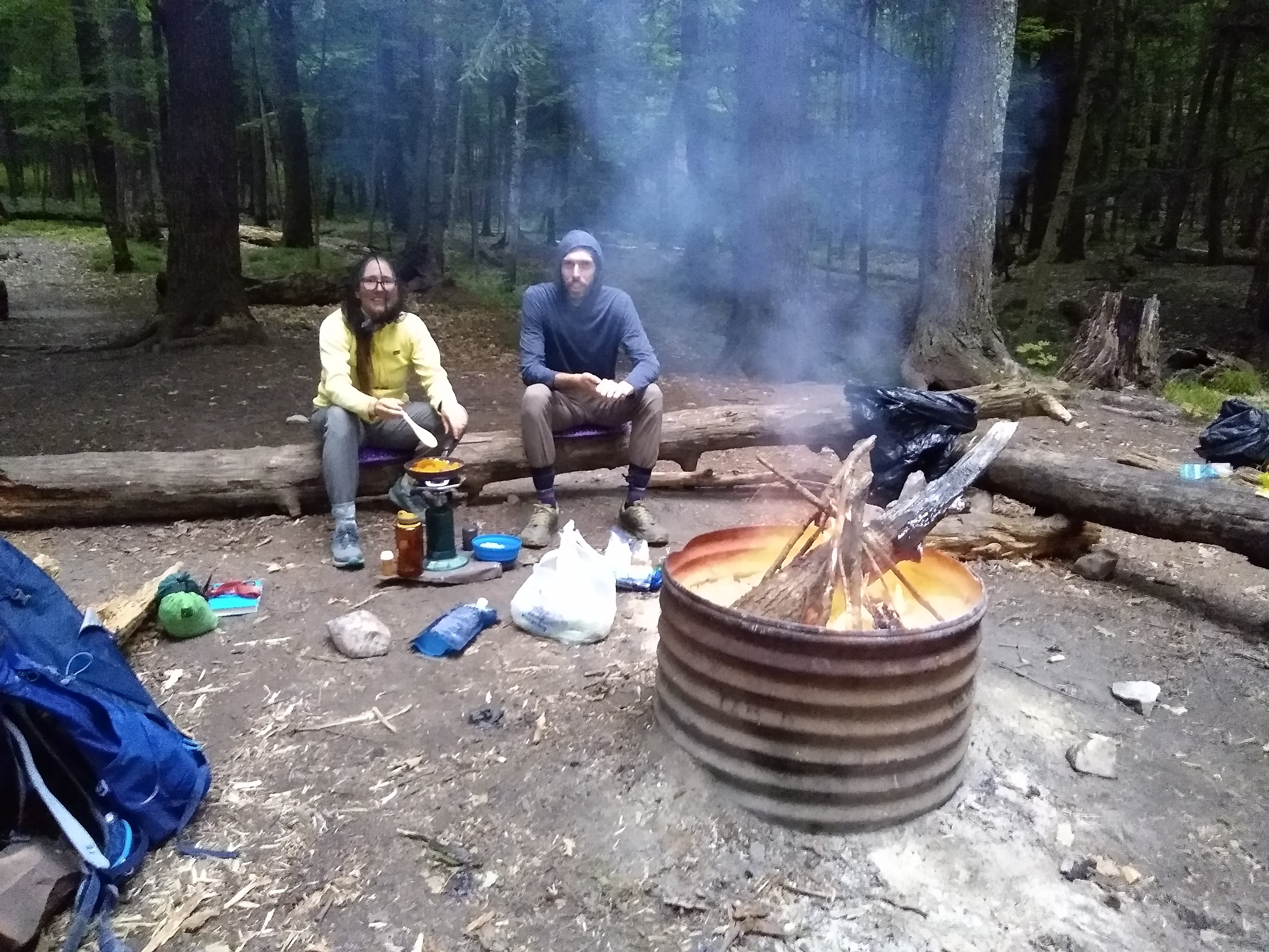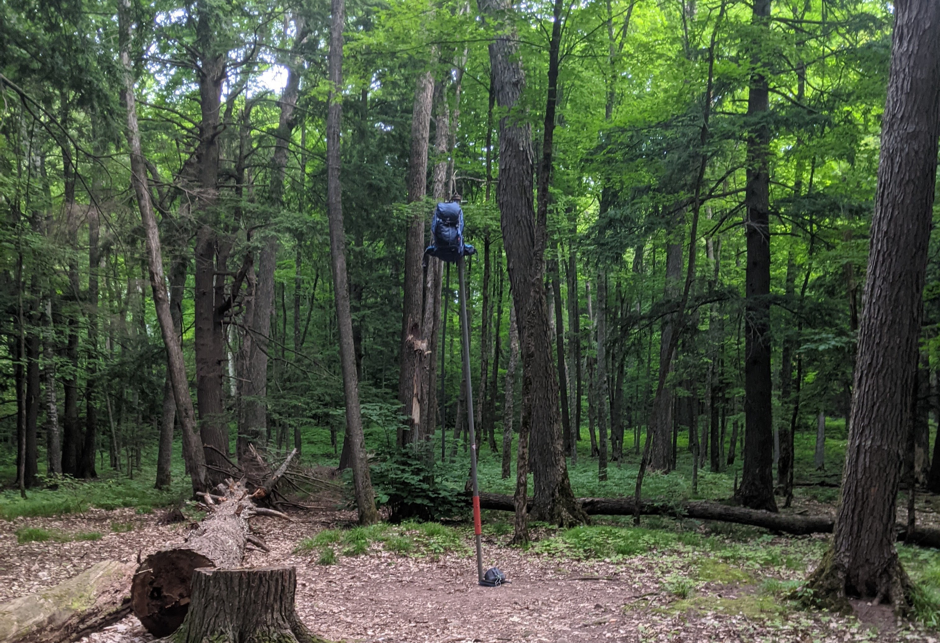 Traveled about a mile from the parking lot to our first campsite near lake of the clouds. Since we were returning to the car the next morning, we packed pretty heavy and brought the big stove. We enjoyed quesadillas and a great camp fire. The campsite was private with good lake access. Hanging our pack on the bear pole took some effort.