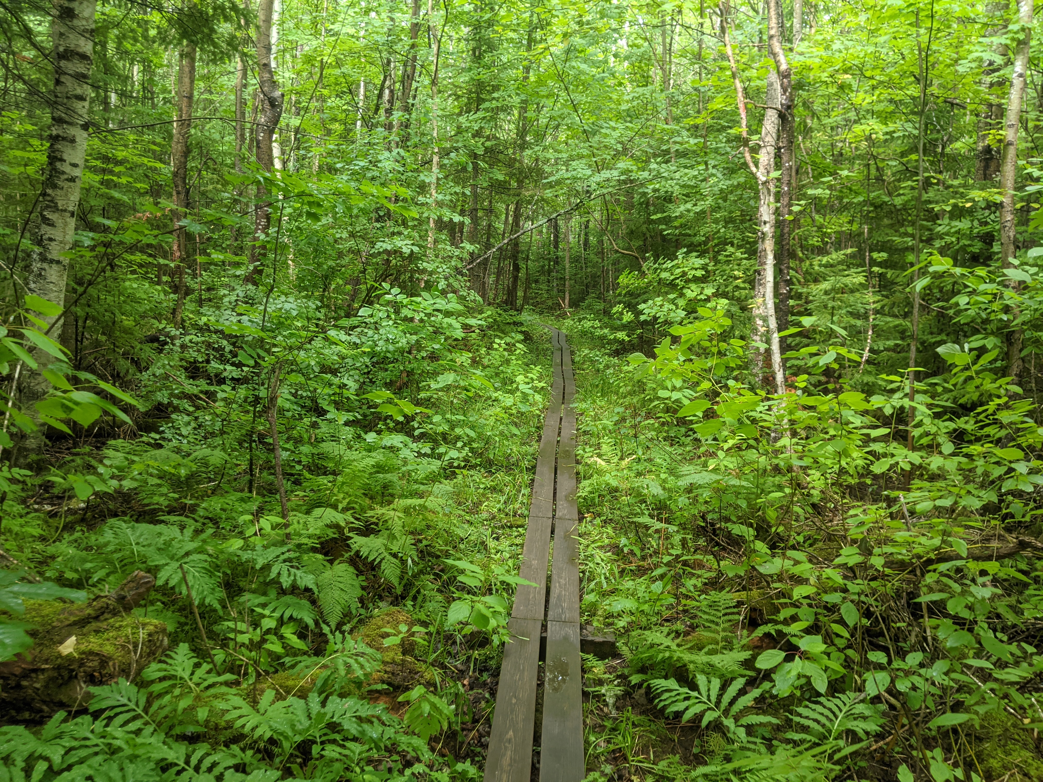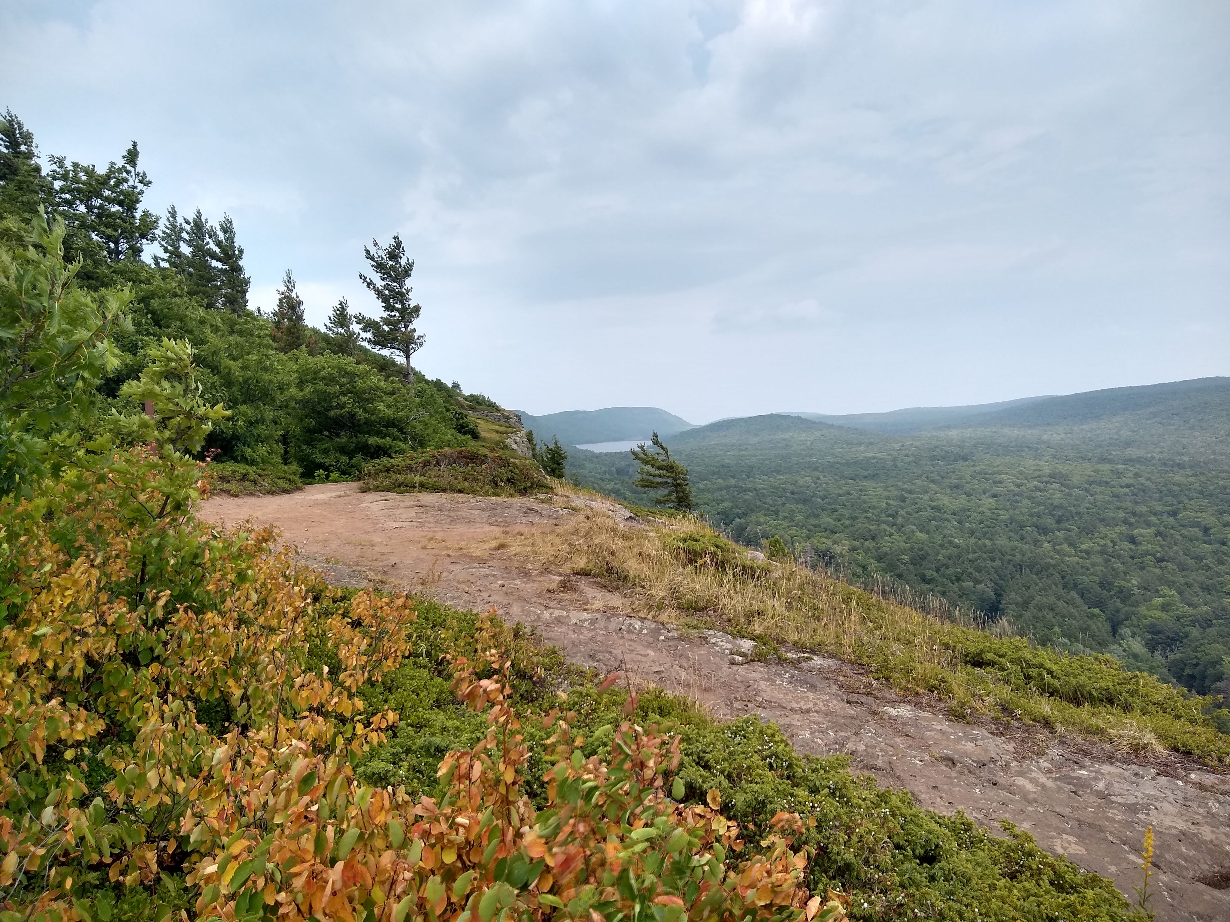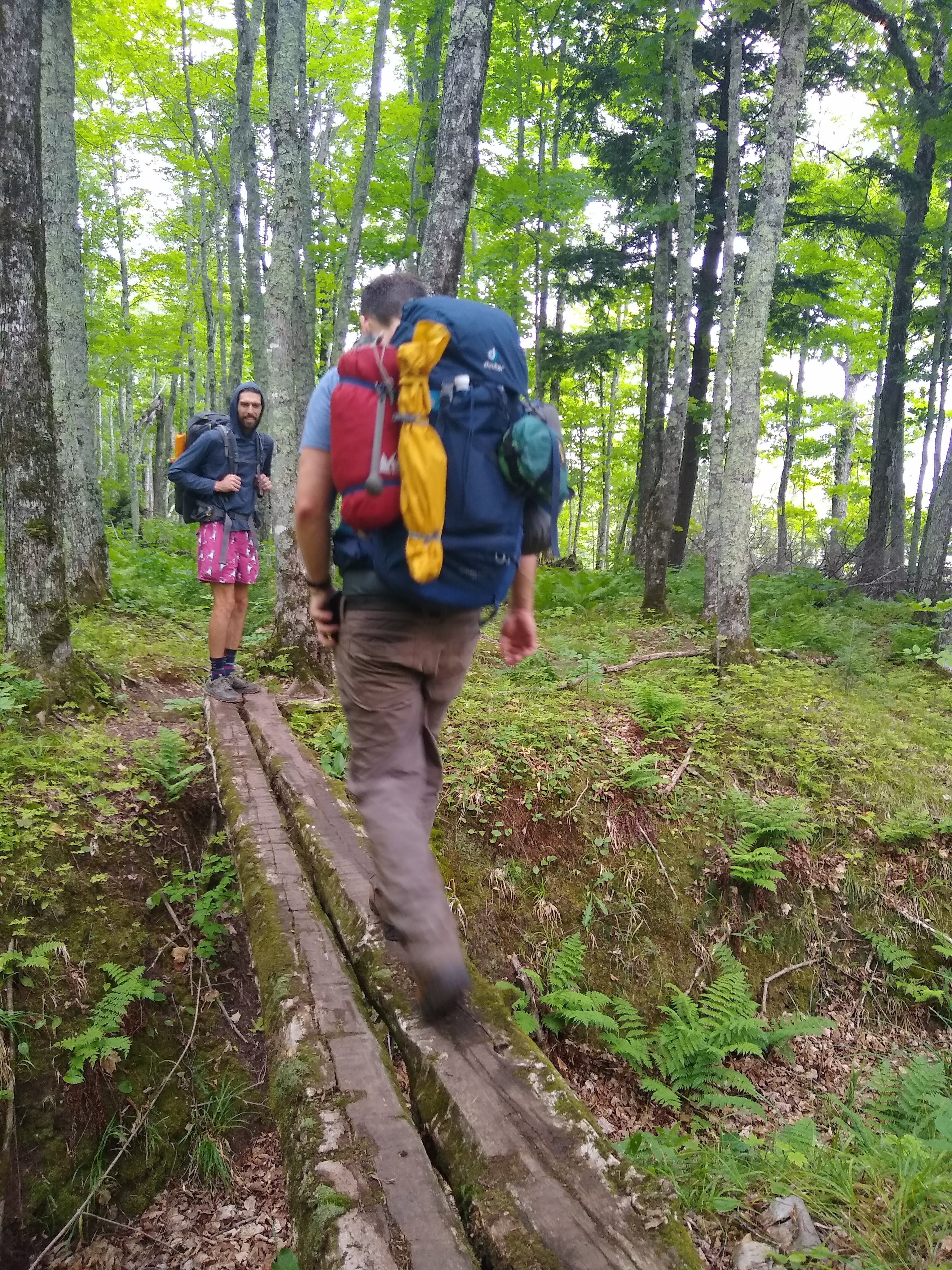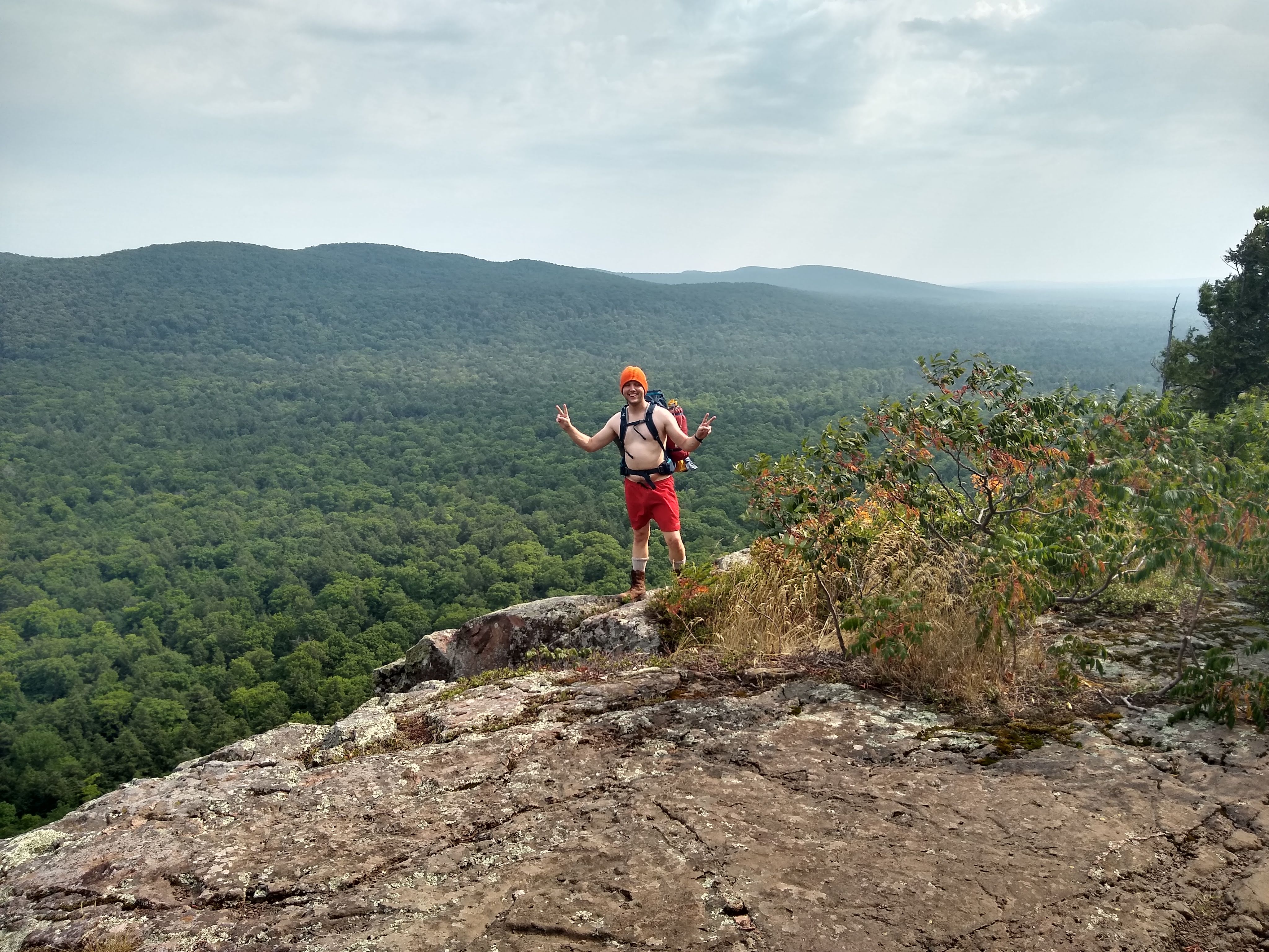 Arriving at our campsite around 3 PM, we enjoyed an early dinner. We then chose to head out and walk the ~5 miles back to the car that afternoon rather than staying another night. The campsite wasn't very exciting, and the mosquittos were pretty agressive. Furthermore we would gain an extra day in Madison, which was exciting. The hike back to Lake of the Clouds was a long ascent eventually bringing us to a ridge with stunning views. It was hot and muggy for most of the hike.