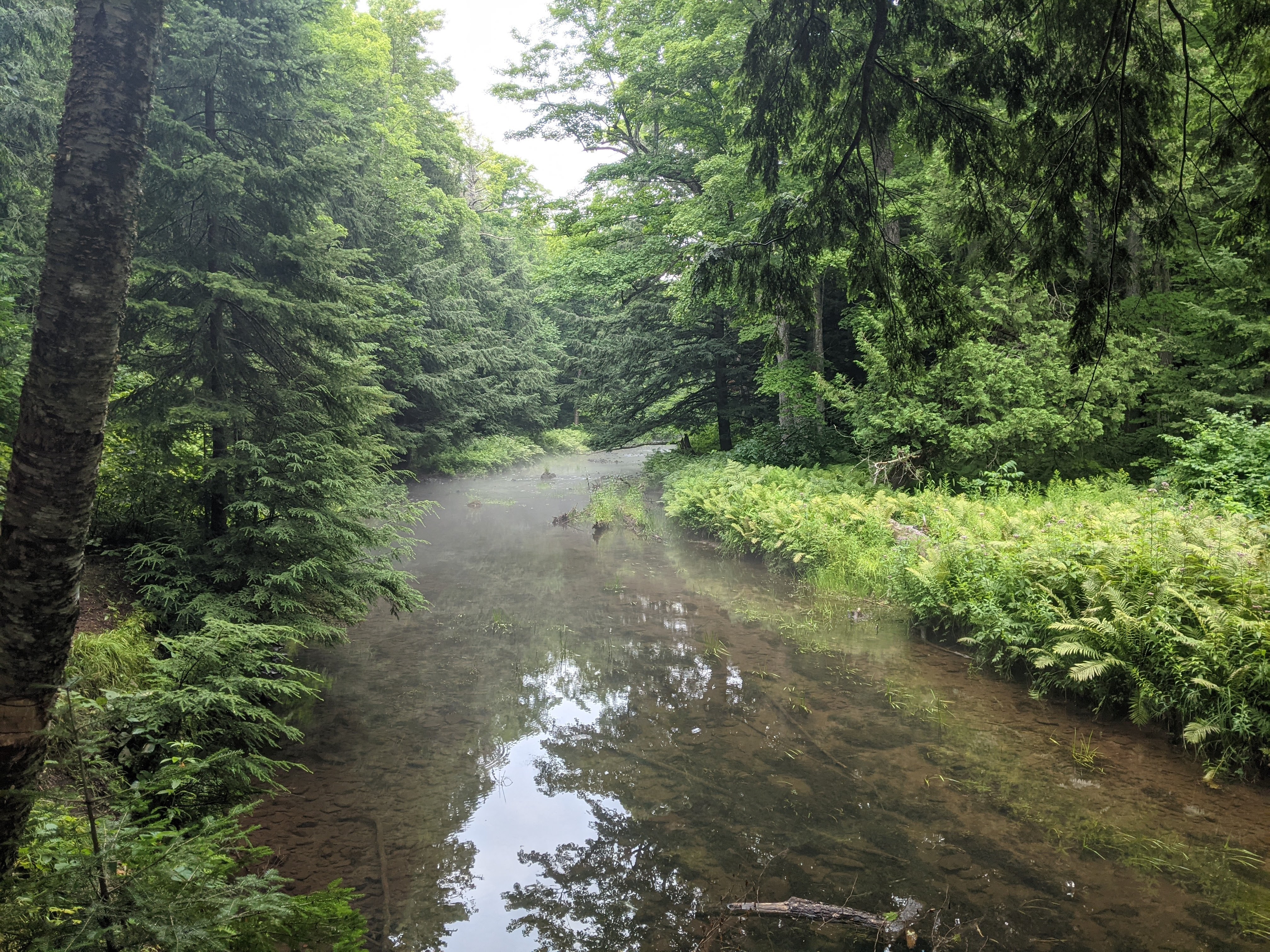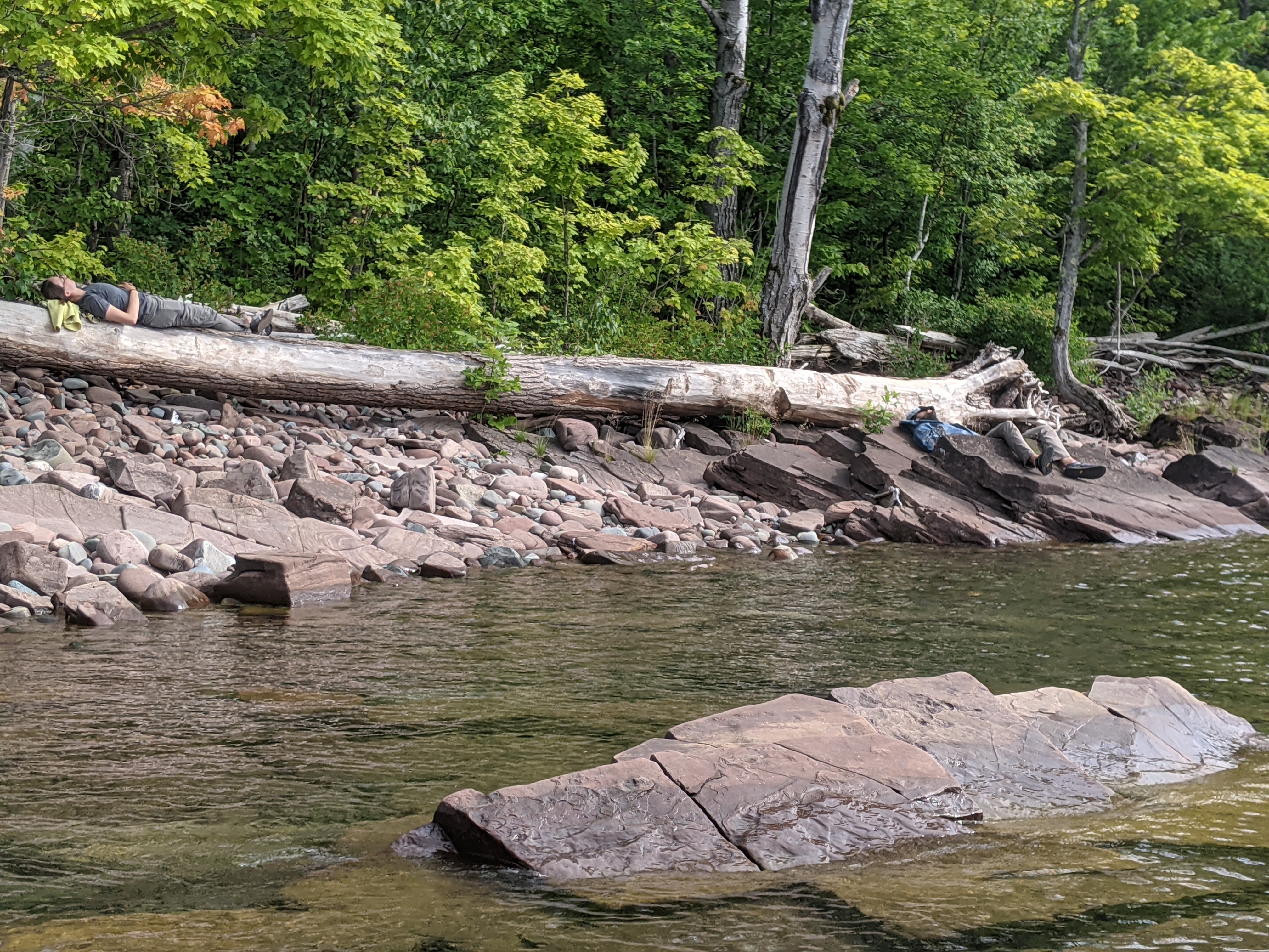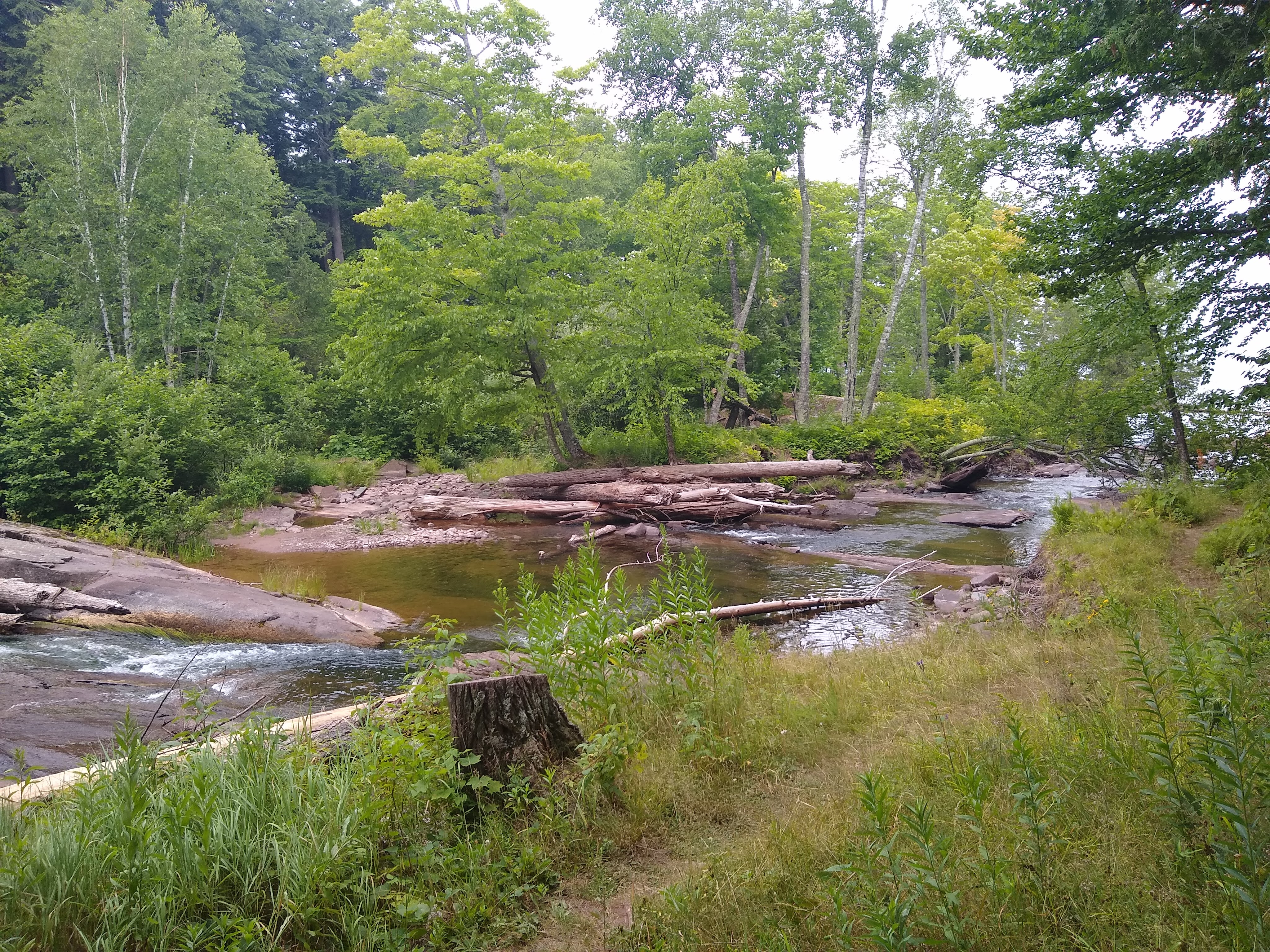 On Friday we traveled further along Lake Superior to the mouth of Big Carp River. We departed the lake and travled for several hours deep into the woods, following the river. There were many micro-ecosystems along the trail, and the terain was more varied including steep valleys and prolonged hills. There were two places where we needed to ford the river.