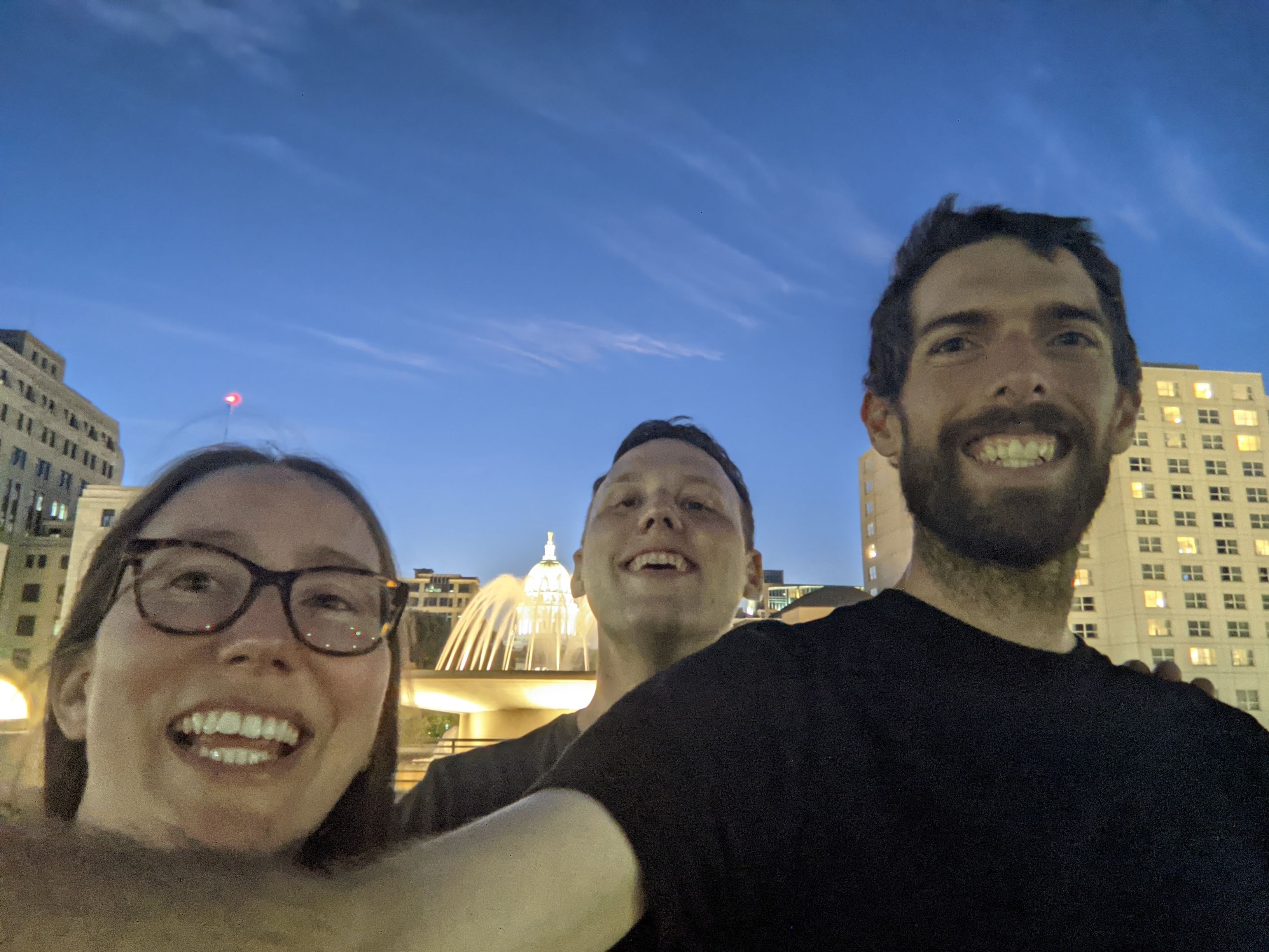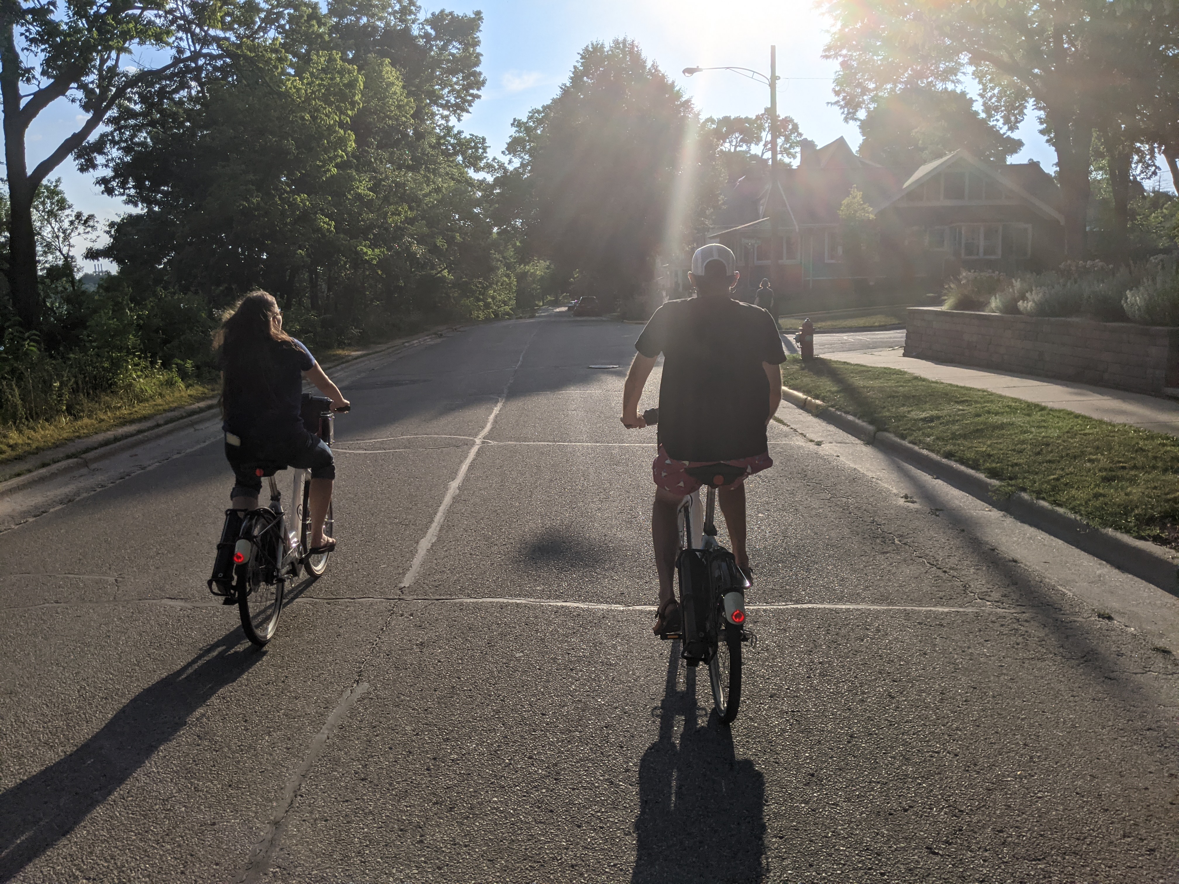 After cleaning, checking for ticks, and nursing our wounds; we enjoyed a perfect summer Saturday in Madison. We started out with the farmers market, enjoyed a salad at Ian's, and checked out the Capitol Overlook. Finally we rented some electric bikes and completed the Monona lake loop, enjoying a snack and some live music at the Biergarten along the way.