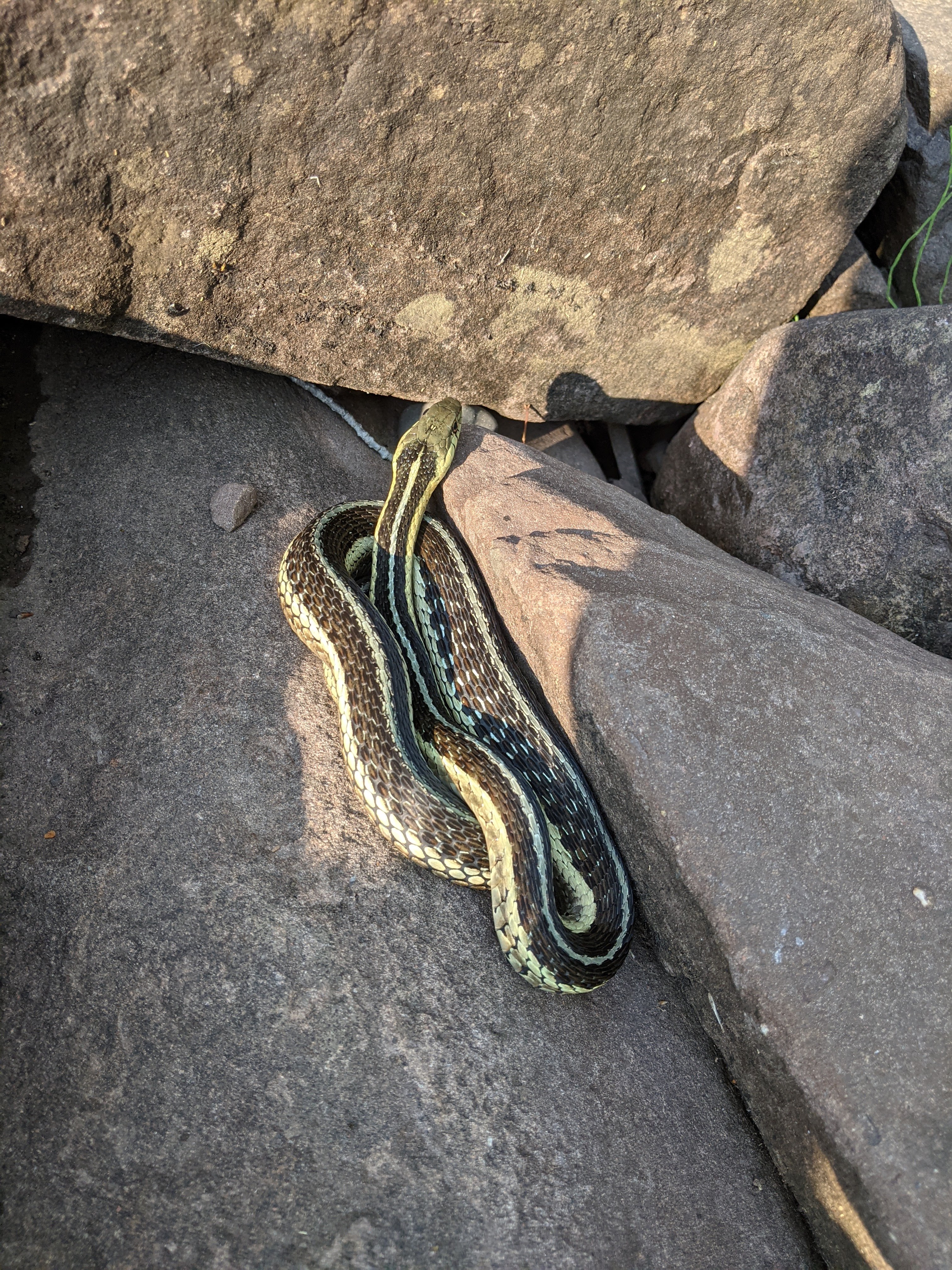 After lunch we walked for a few more hours along the Superior coastline. The trail never got far from the lake, but sometimes we lost sight of it due to the density of the plant growth. This section of trail was sometimes overgrown---we got the feeling that not many took this route. We enjoyed many flowers, snakes, birds, and insects, including a few wild grouse that were scared out of the bush by our travel.
