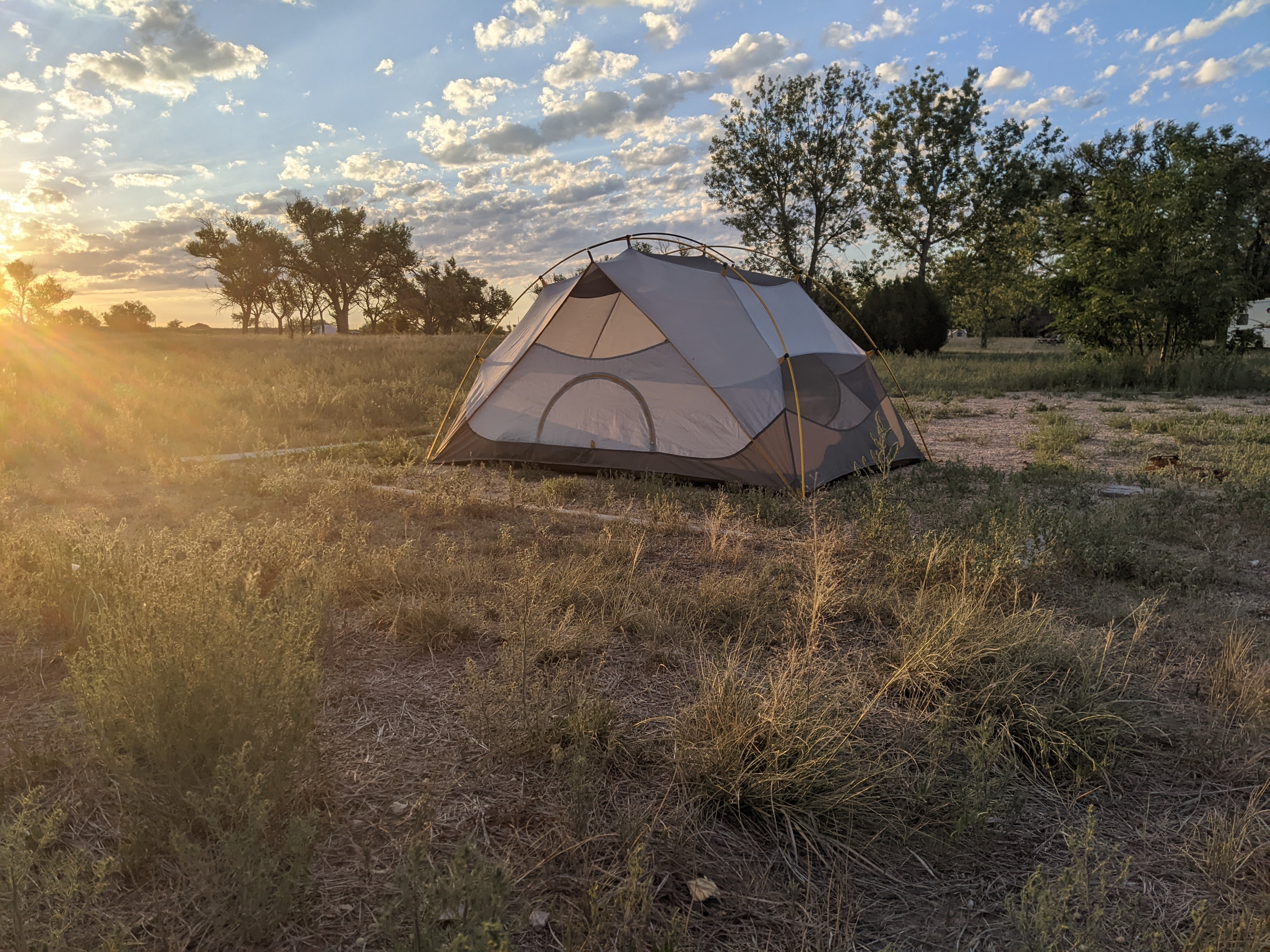 Our grassy campsite. It was so hot we slept without the rain fly.