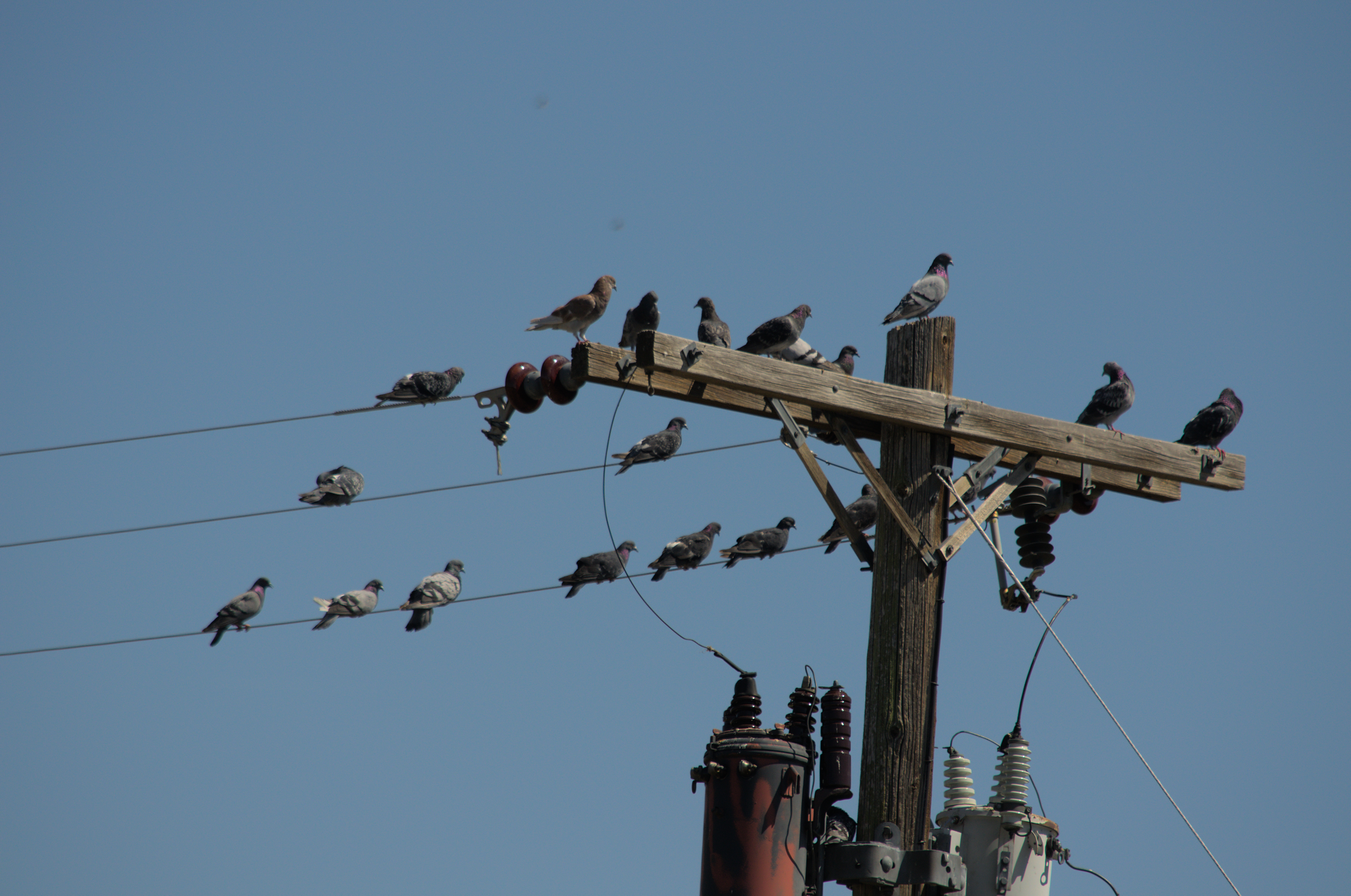 Pigeons crowd around a telephone pole near Crow Valley campground.