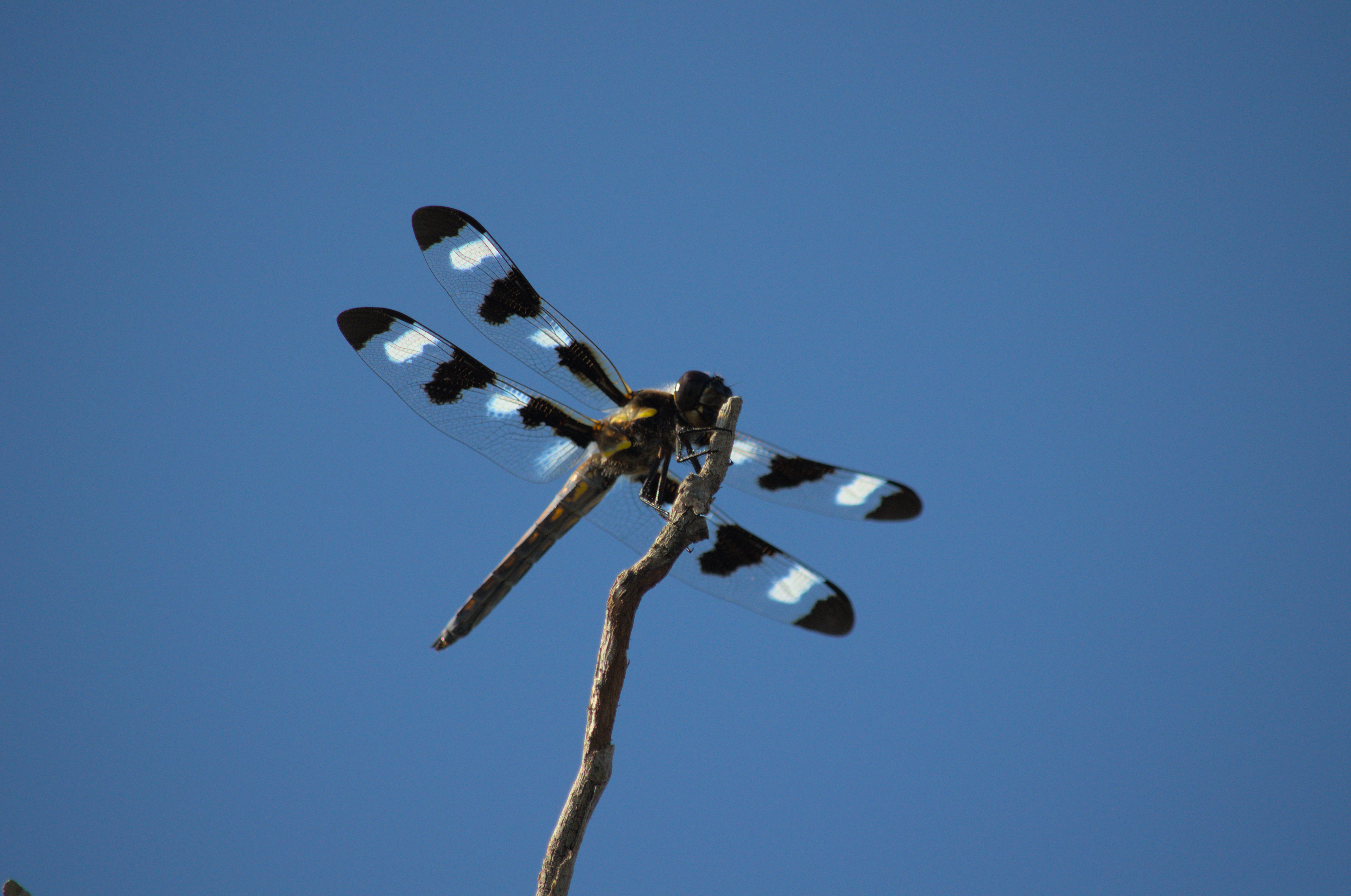 A twelve-spotted skimmer dragonfly seen in the ghost town of Keota.