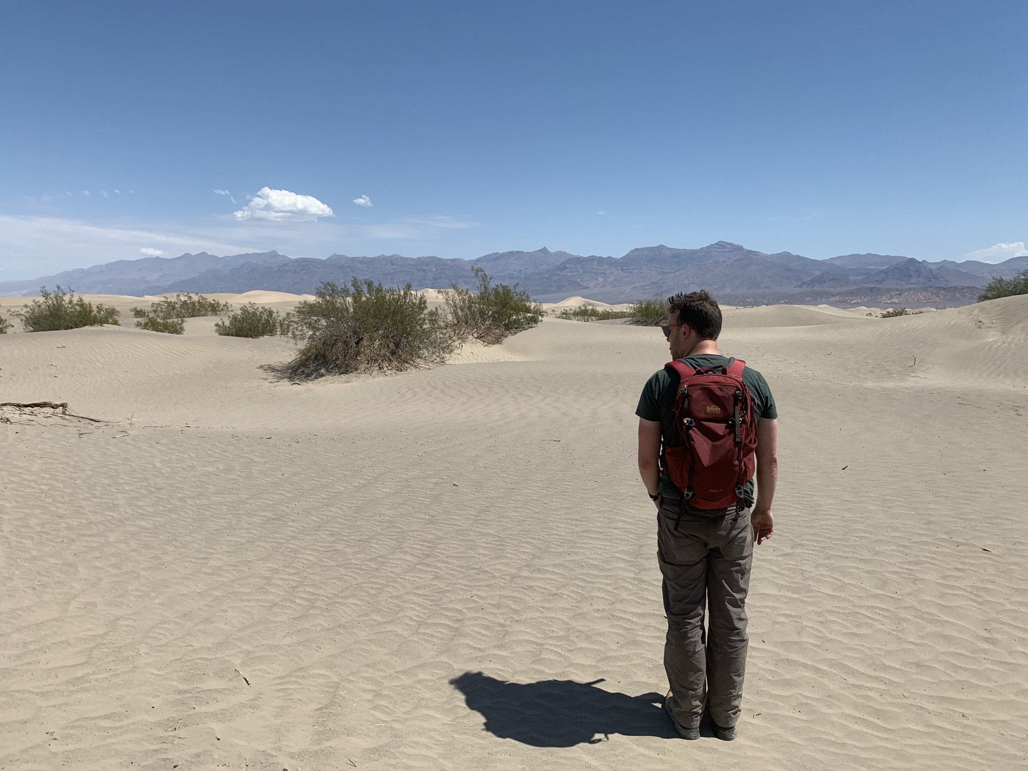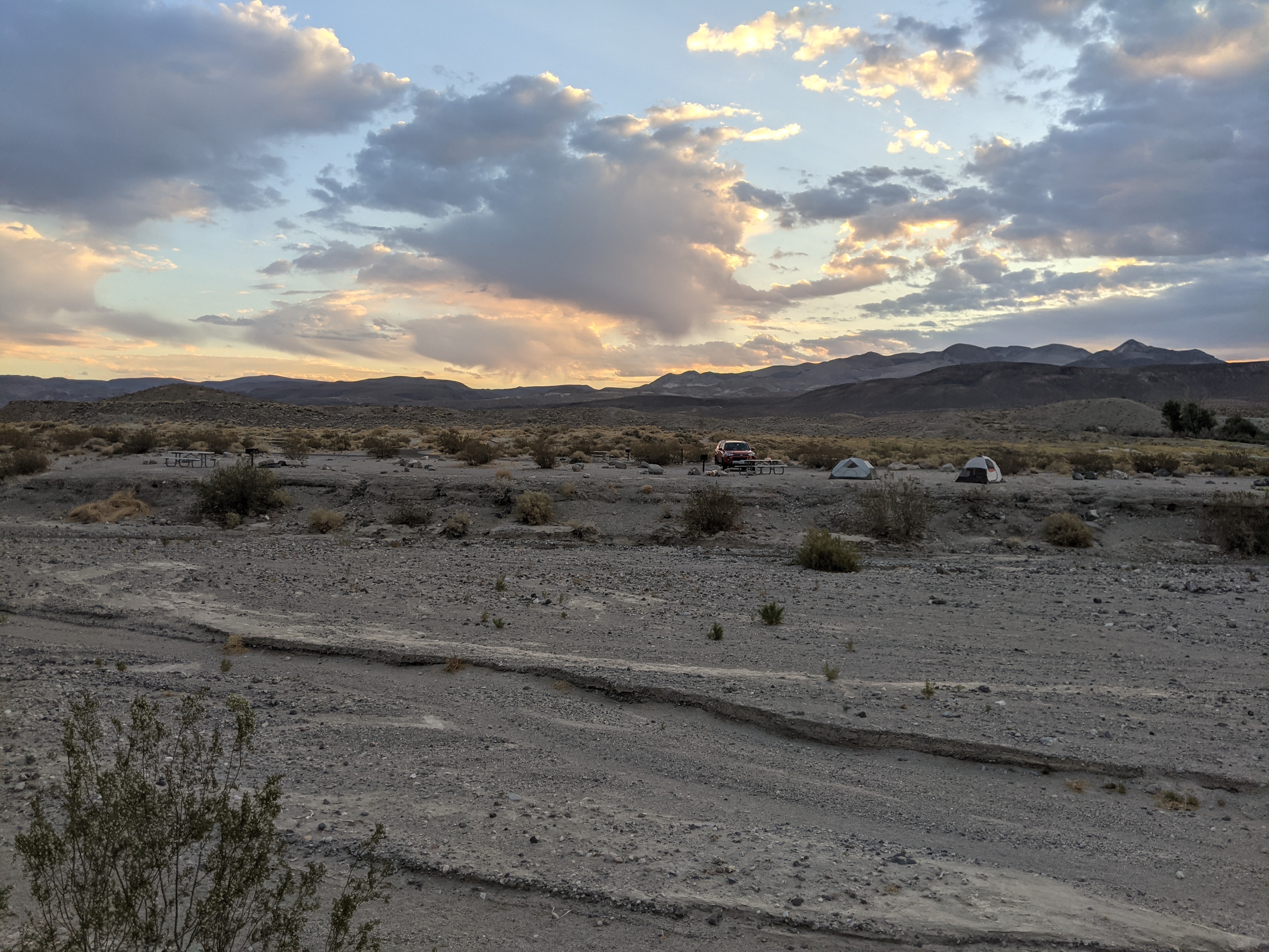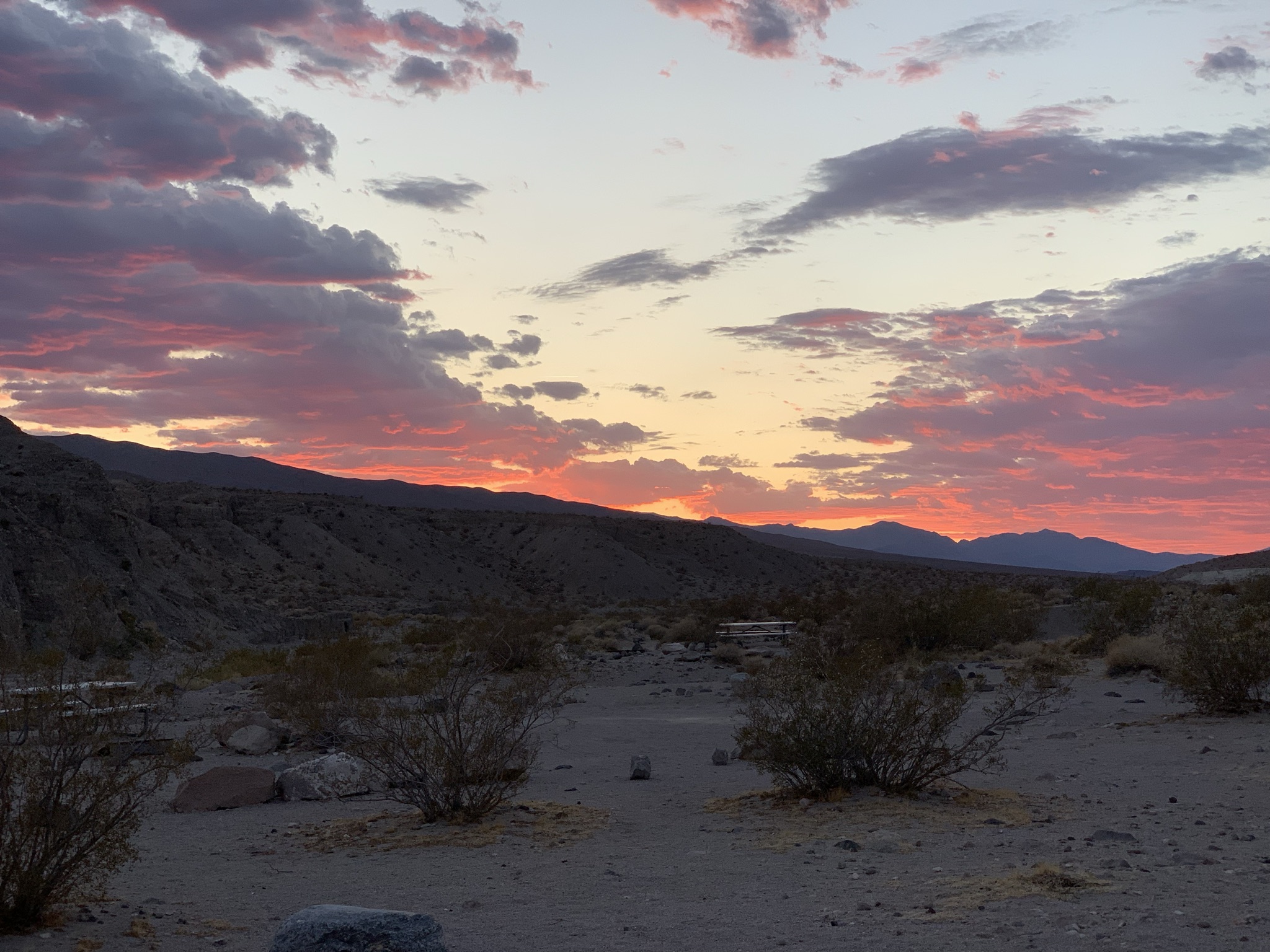 Returning to the campsite, Tyler and Blaise were able to enjoy showers using the campsite hose (a huge luxury in Death Valley!) and a wonderful desert sunset.