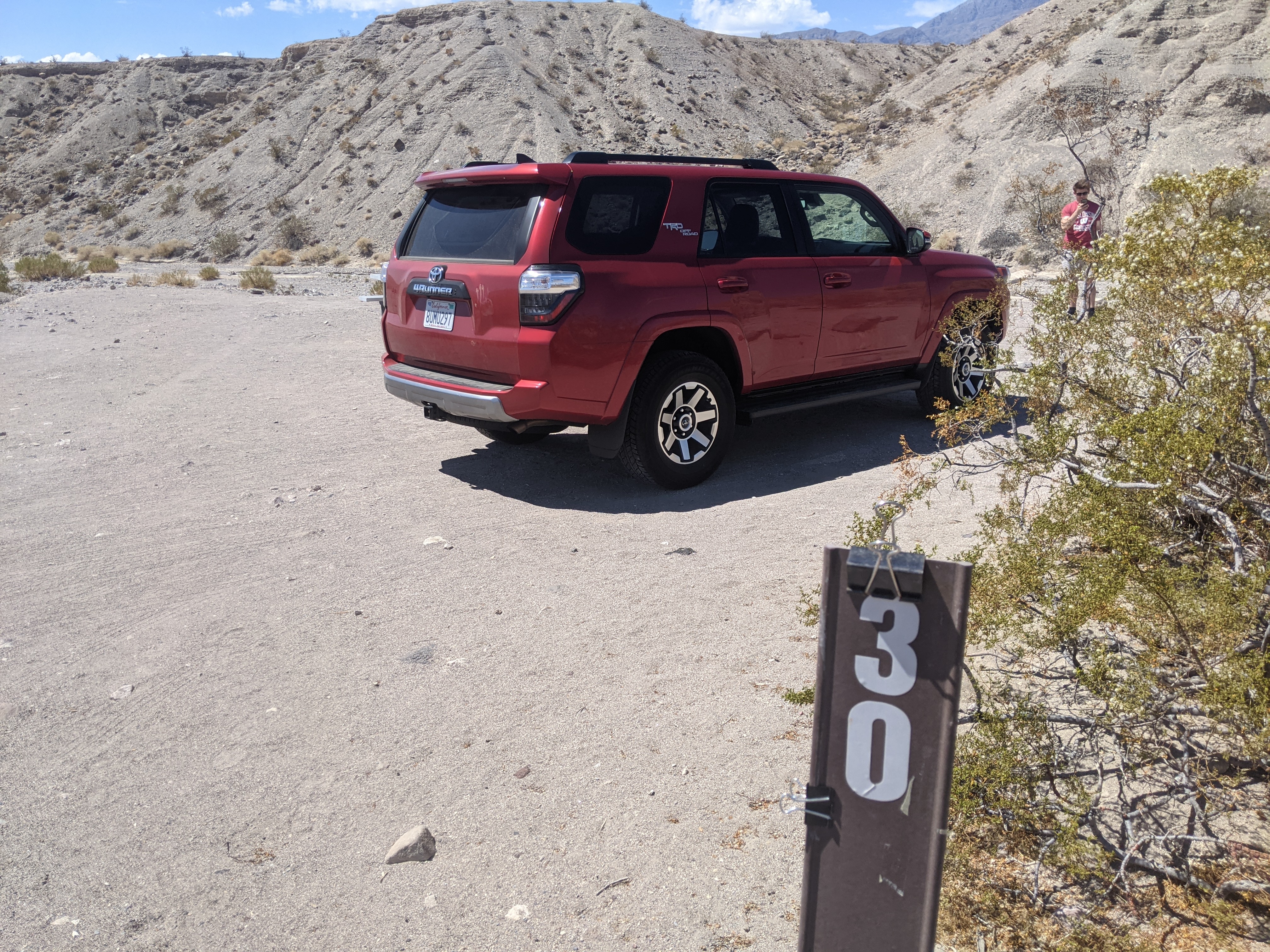 Waking up early, Tyler and Blaise head to Death Valley---their final destination. Checking the internet one last time gave warnings of extreme summer heat. The pair chose to camp at a somewhat remote campsite with a slightly higher elevation: Mesquite Springs. They drove directly to the site and set up. Amazingly, they ended up having the entire campsite to themselves! It was windy and 113 deg F once the pair were done setting up camp. Luckily the wind never returned.